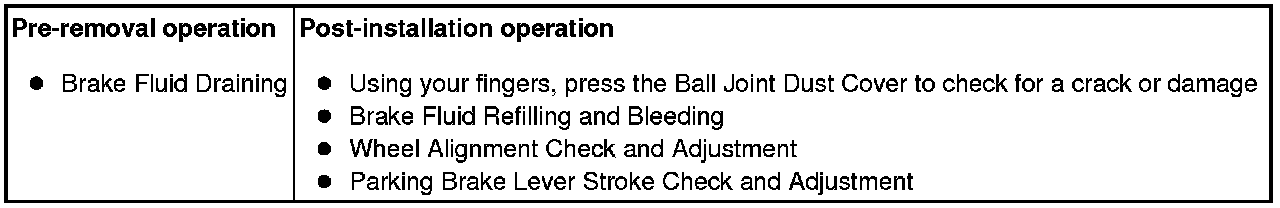 2. Secure the removed brake caliper assembly with a wire or other similar material at a position where it will not interfere with the removal and installation of the rear wheel hub assembly.