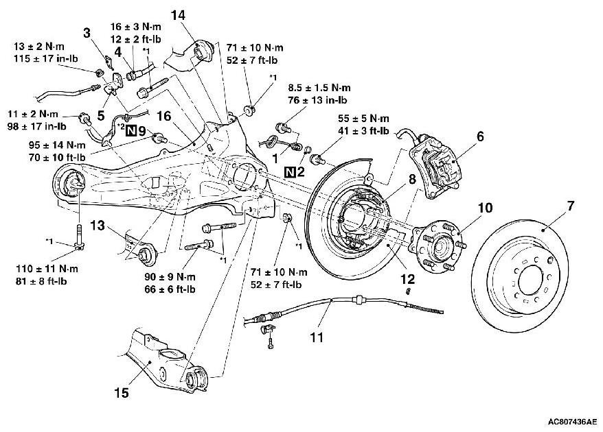 - The part indicated by *2is the bolt/nut with friction coefficient stabilizer. In removal, replace it with new one.