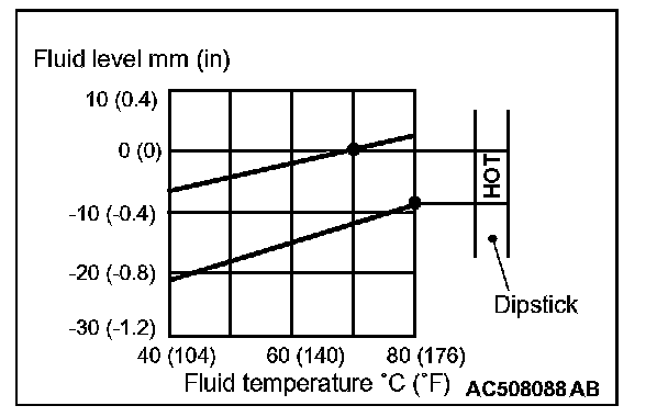 NOTE: When a certain amount of time is required to warm up the transmission fluid to the normal operating temperature 70 - 80°C (158 - 176°F), check the fluid level referring to the characteristics chart.