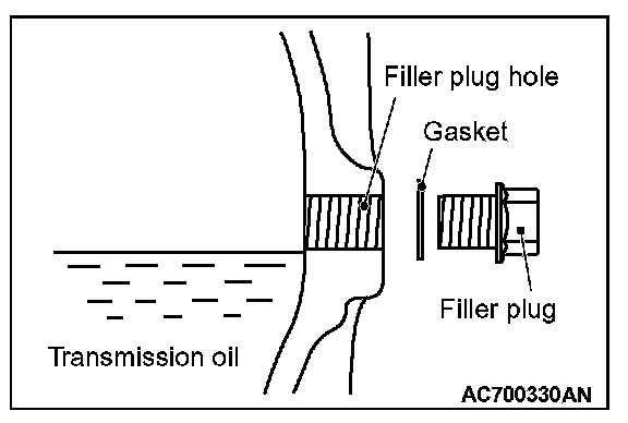 TRANSAXLE OIL REPLACEMENT1. Remove the filler plug and gasket.