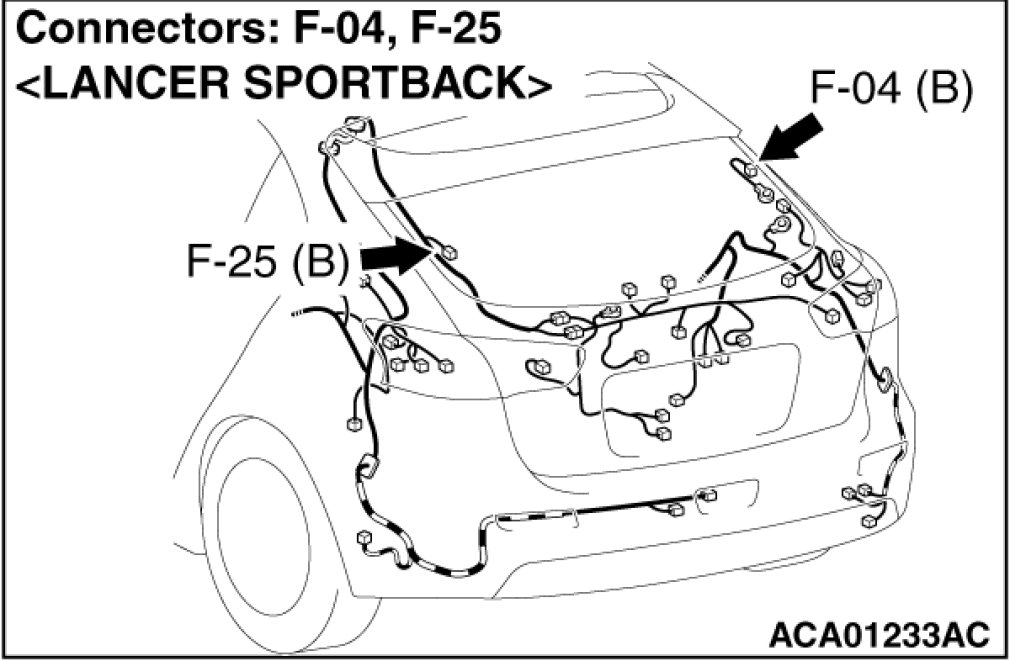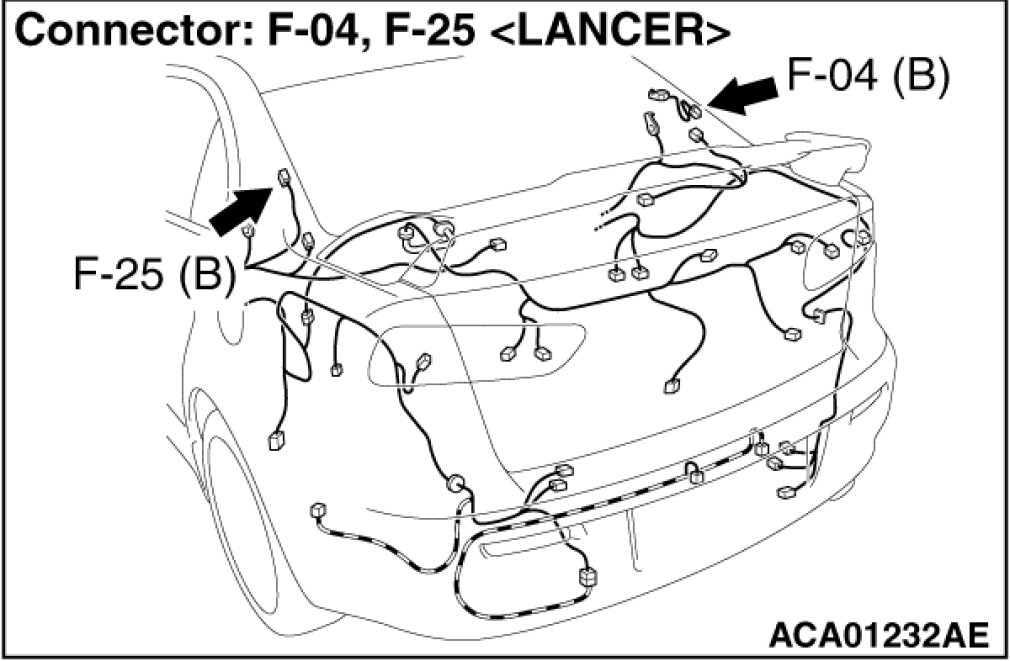 (1)Disconnect rear window defogger connector F-04, and measure at the wiring harness side.