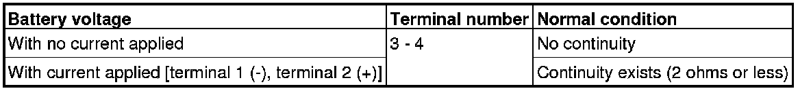 Follow the table below to check the rear window defogger relay for continuity.