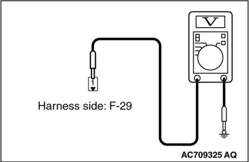 (4)Measure the voltage between rear window defogger connector F-25 terminal No.1 and ground.