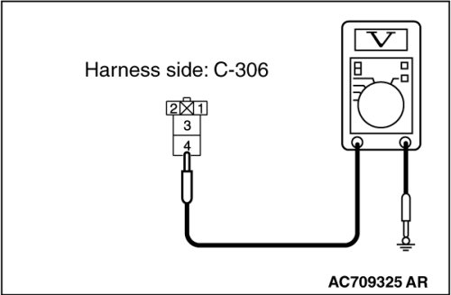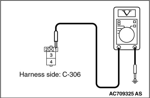 (1)Disconnect rear window defogger relay connector C-306, and measure the voltage at the junction block side.
