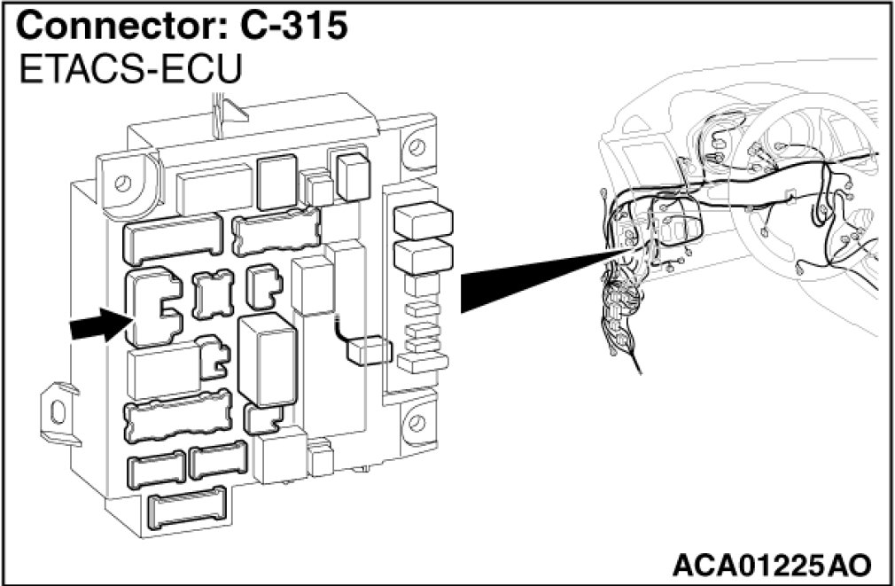 STEP 5. Check ETACS-ECU connector C-315 for loose, corroded or damaged terminals, or terminals pushed back in the connector.