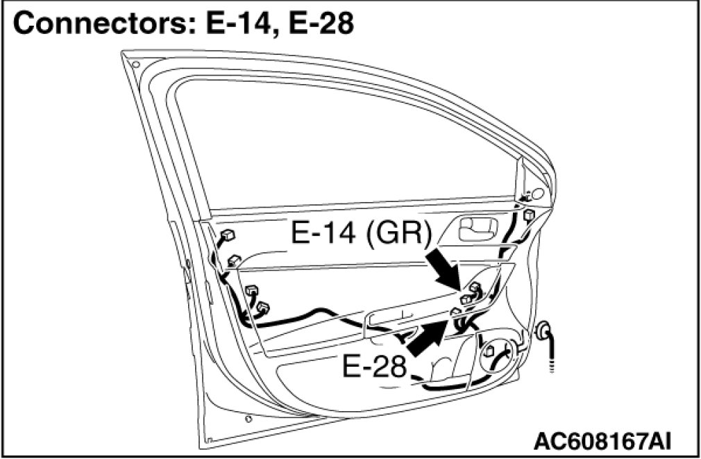 Q. Is front power window motor (LH) connector E-14 in good condition?