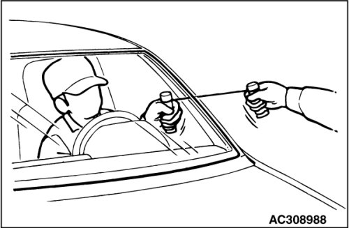 (2) Pass the piano wire from the inside of the vehicle through the hole.