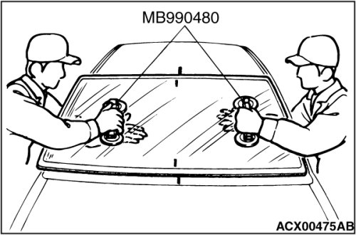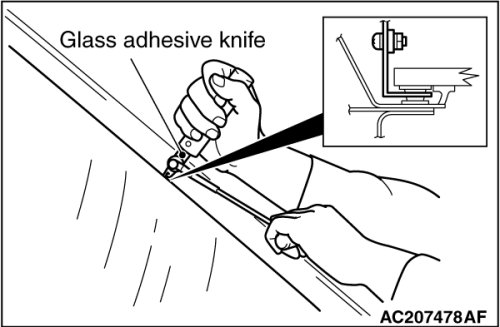 5. Use special tool MB990480 to remove the windshield glass.