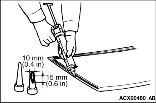 4. Fill a sealant gun with adhesive. Then apply the adhesive evenly around the windshield glass within 30 minutes after applying the primer.