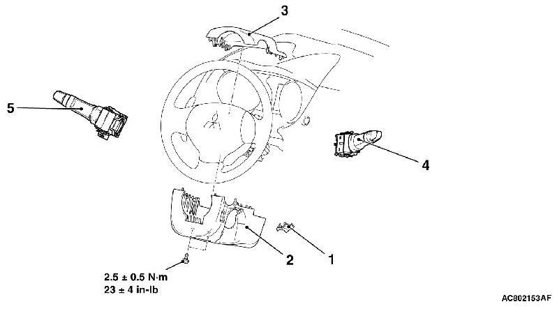 - To remove the driver airbag module, refer to Service Precautions Technician Safety Information and Driver's Air Bag Module and Clock Spring Removal and Installation (Except Ralliart) [Except RALLIART] or [RALLIART].