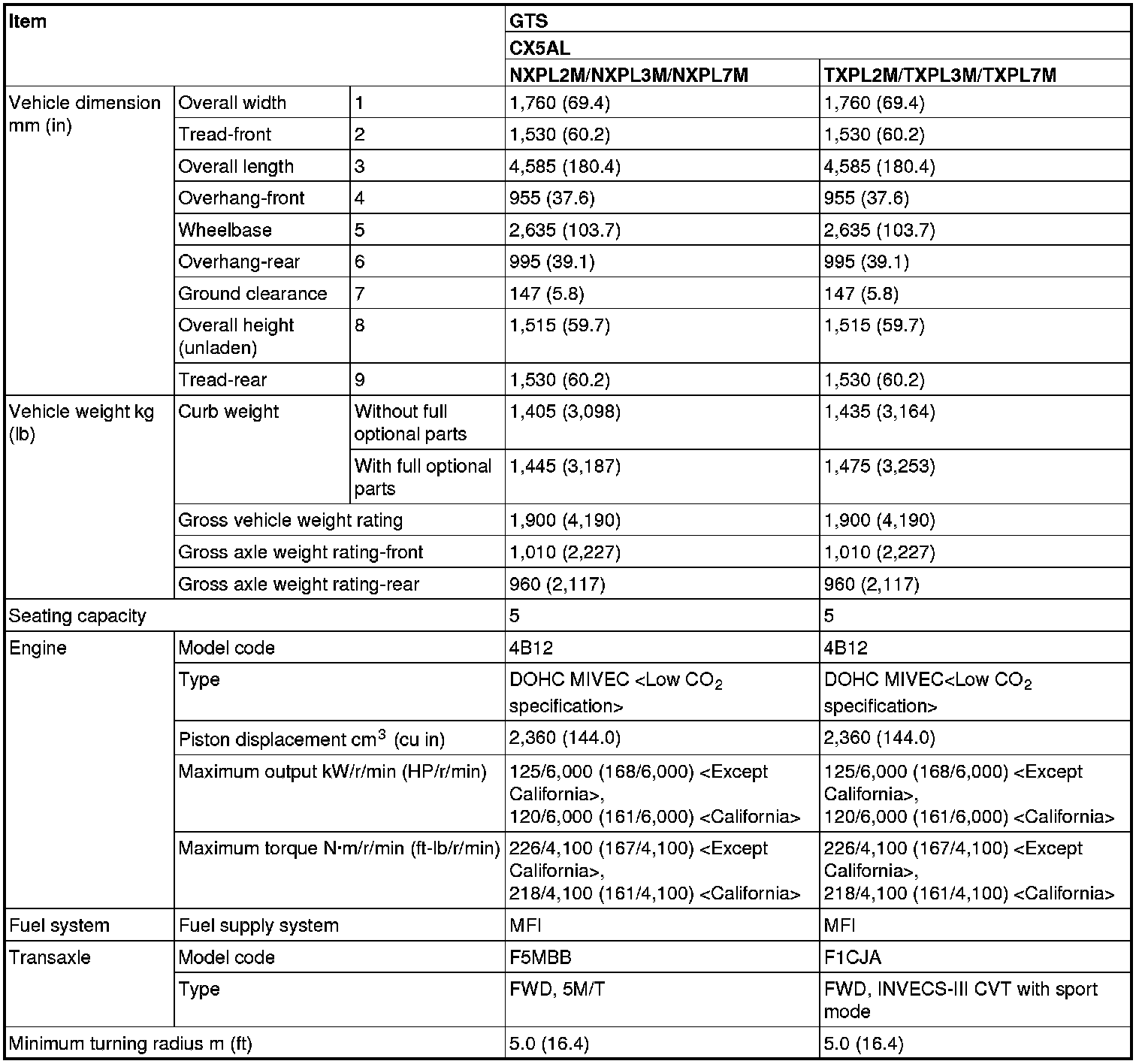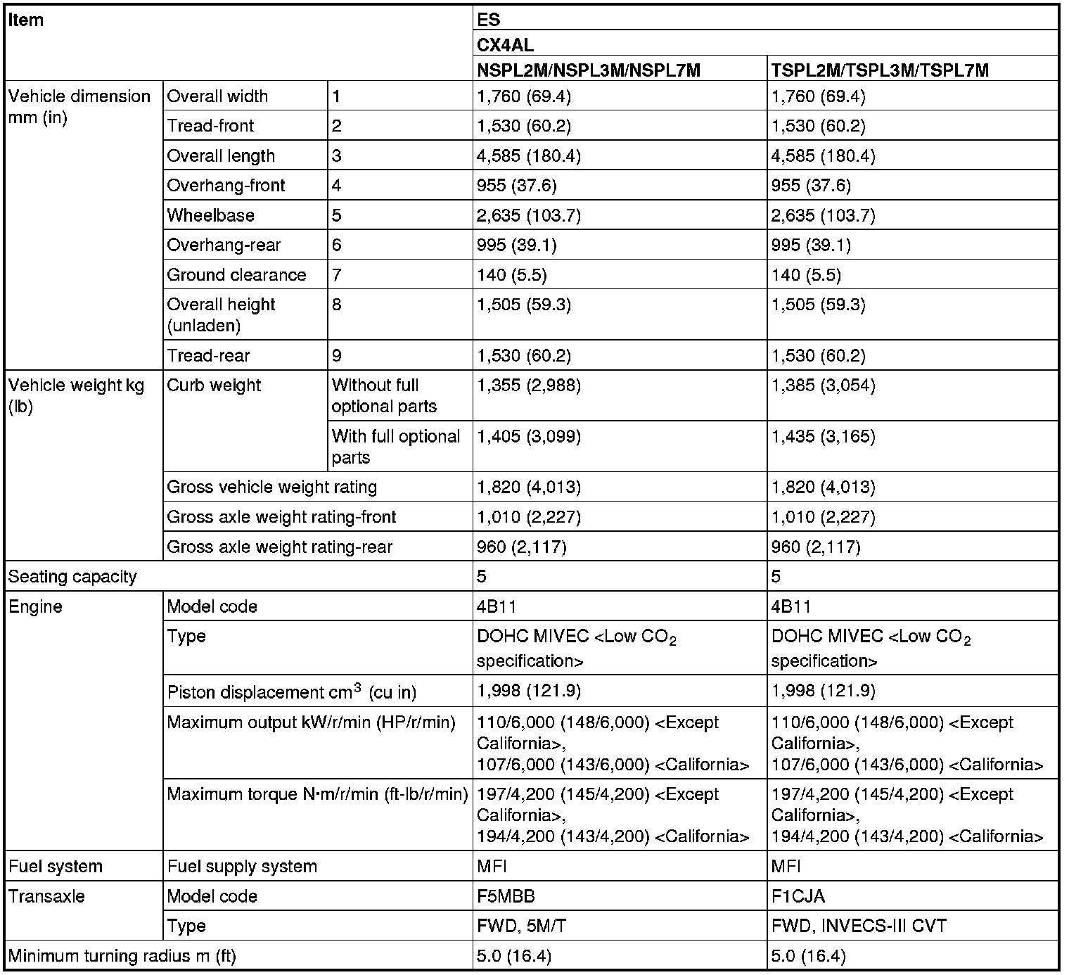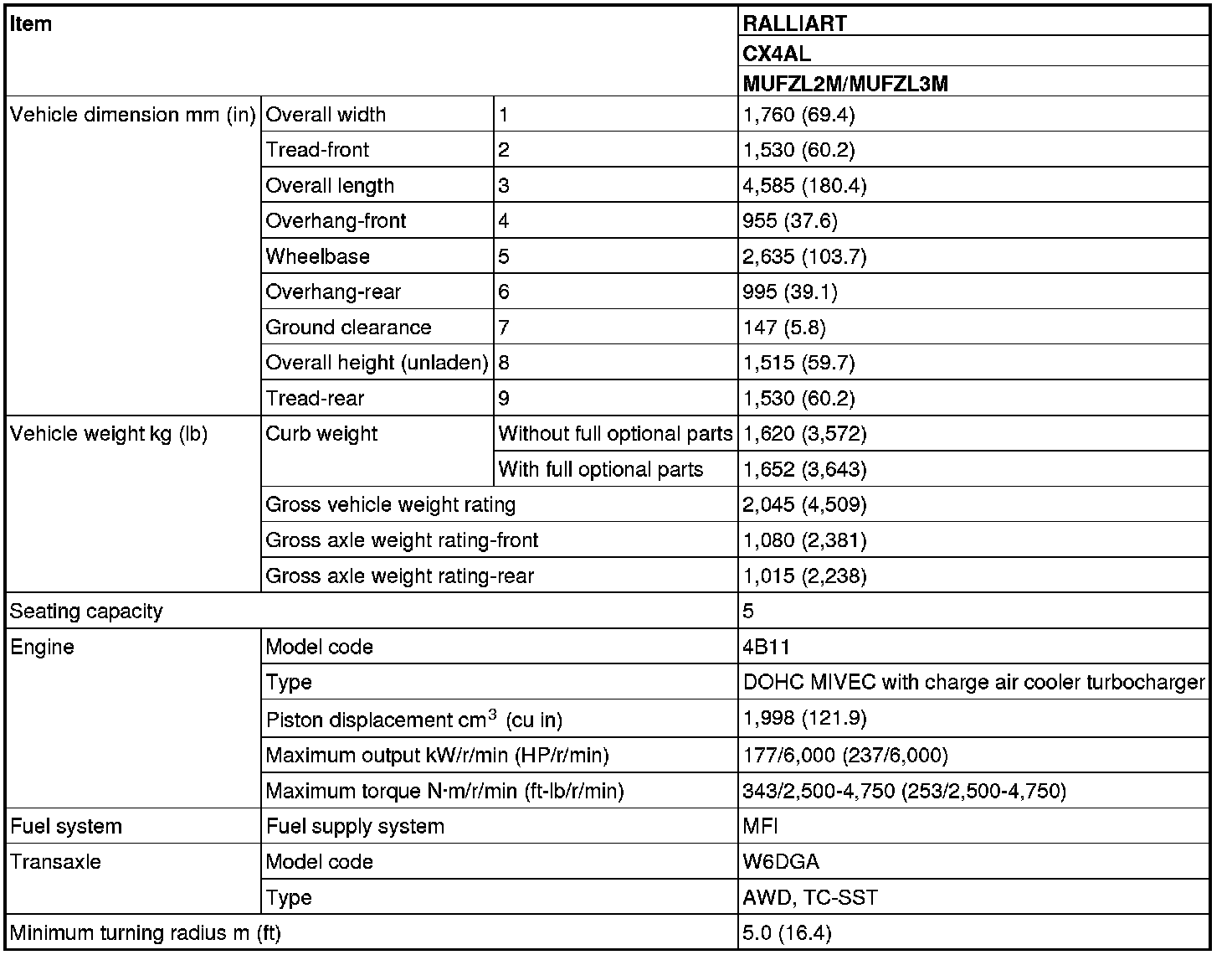 GENERAL DATA AND SPECIFICATIONS [LANCER SPORTBACK]