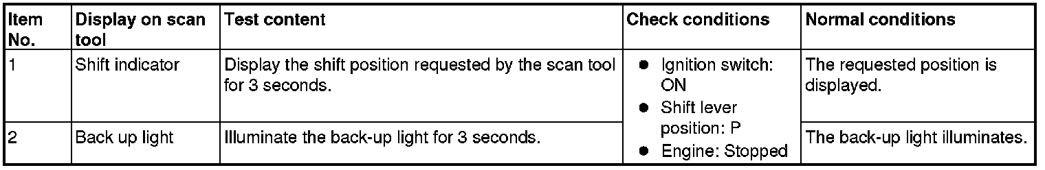 (ACTUATOR TEST REFERENCE TABLE)