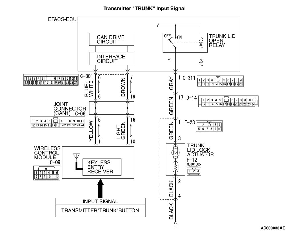 WCM receives the trunk signal from the transmitter, and sends the signal to ETACS-ECU.