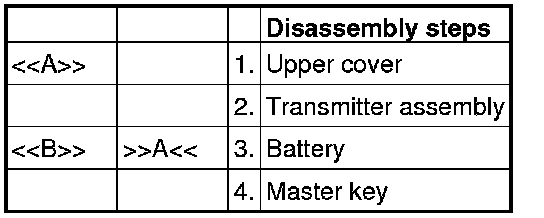 Install a new battery to the transmitter assembly with its (+) side facing towards the master key side.