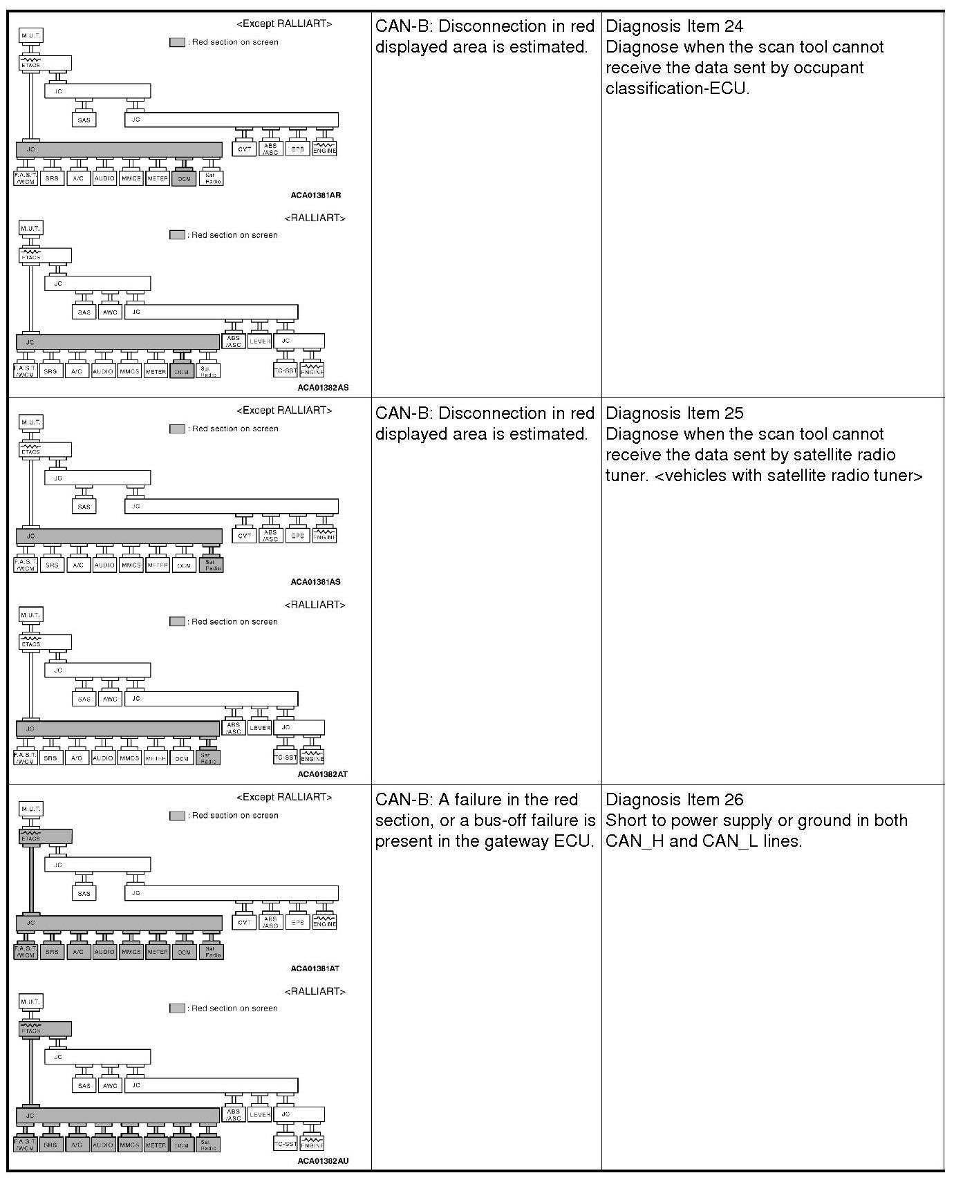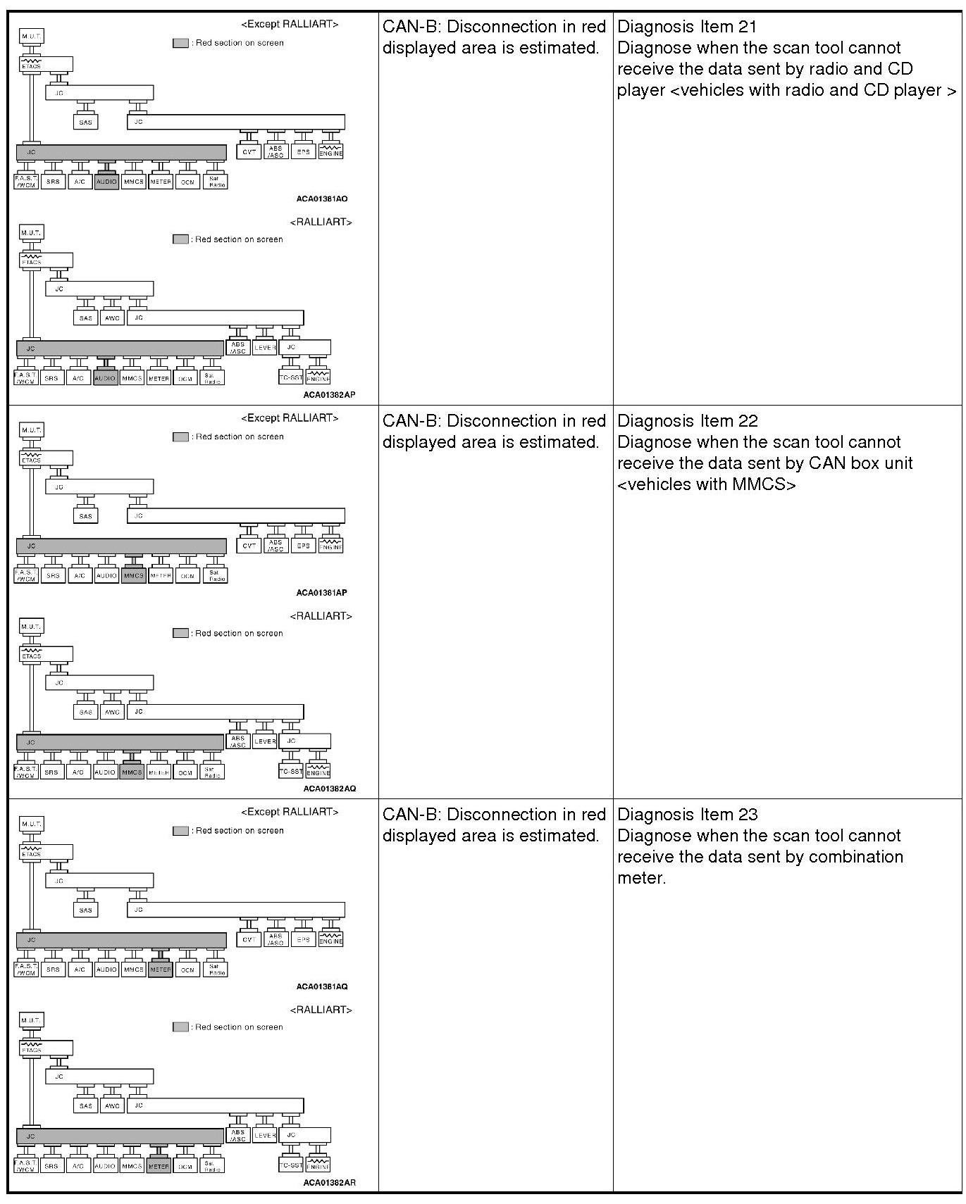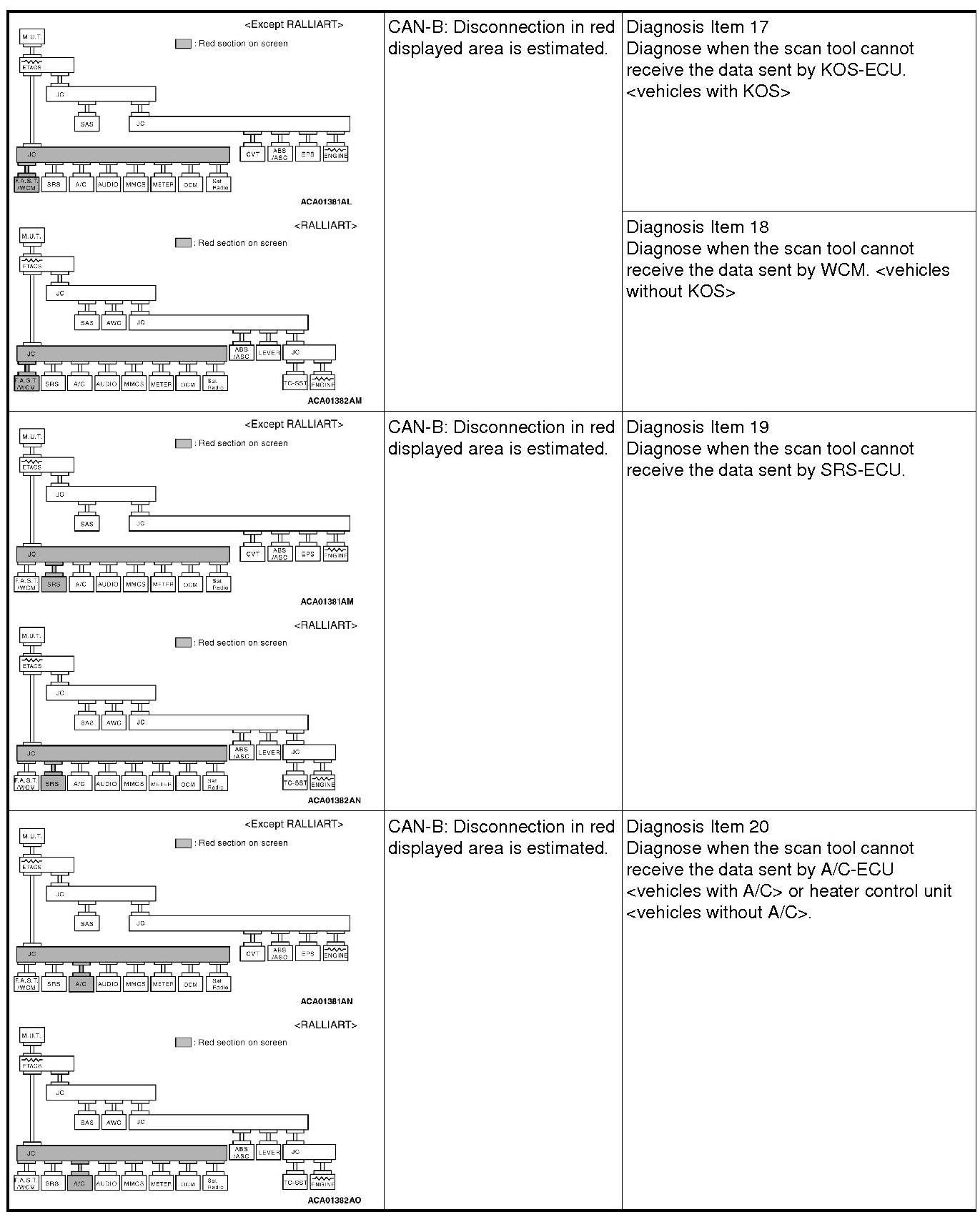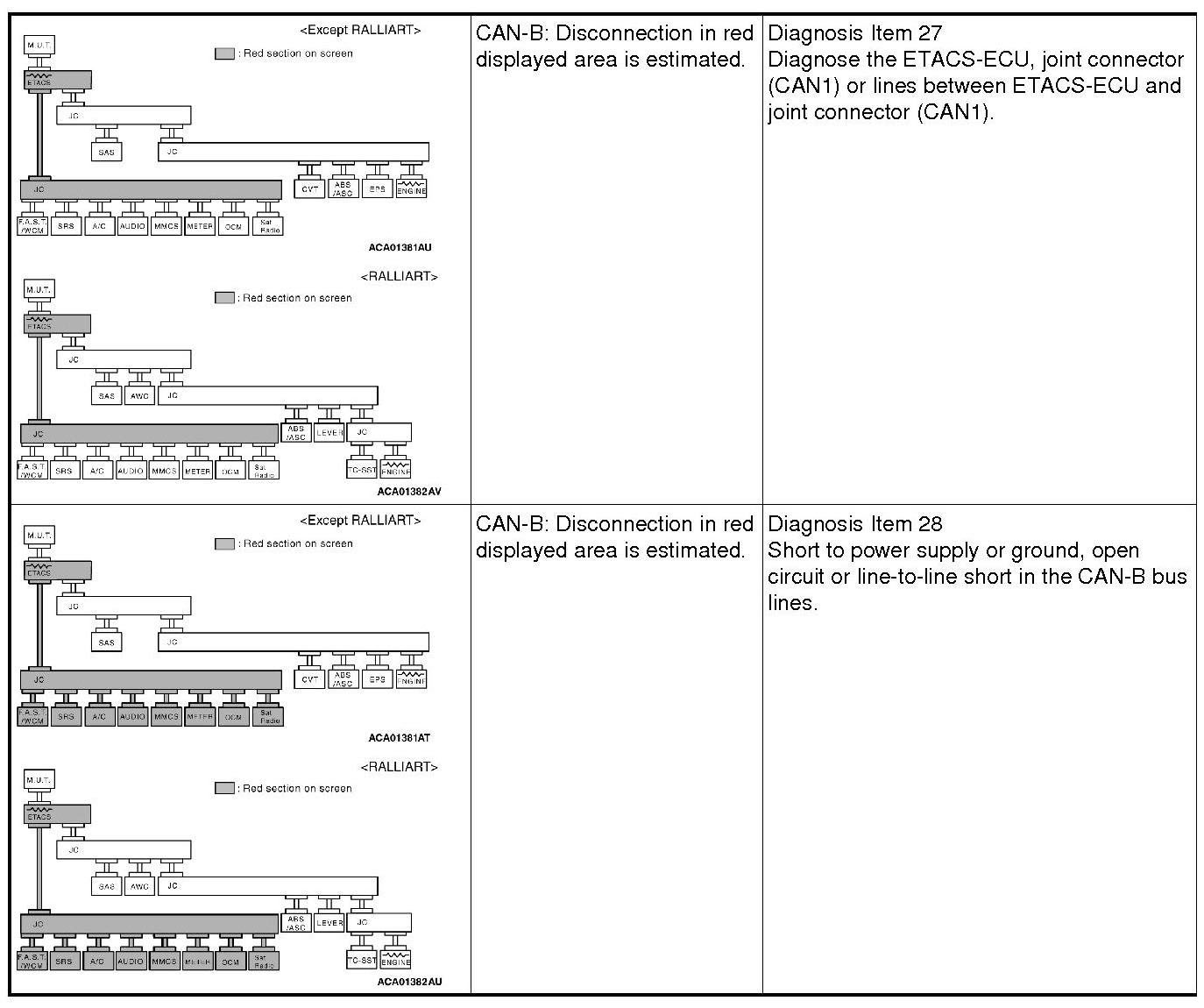 A diagnosis code may not also be set in the CAN-B lines under the conditions below. If no diagnosis code has been set due to electrical noise, confirm diagnosis item 28 Diagnostics Item 28.