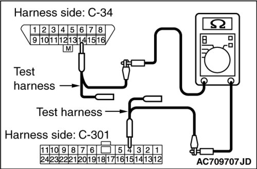 (3)Check the wiring harness between data link connector C-34 (terminal 14) and ETACS-ECU connector C-301 (terminal 4) [CAN_L]
