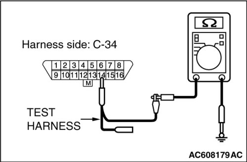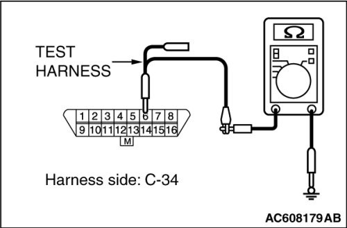 STEP 5. Check the wiring harness between data link connector C-34 and ETACS-ECU connector C-301 for line-to-line short. Measure the resistance at data link connector C-34.