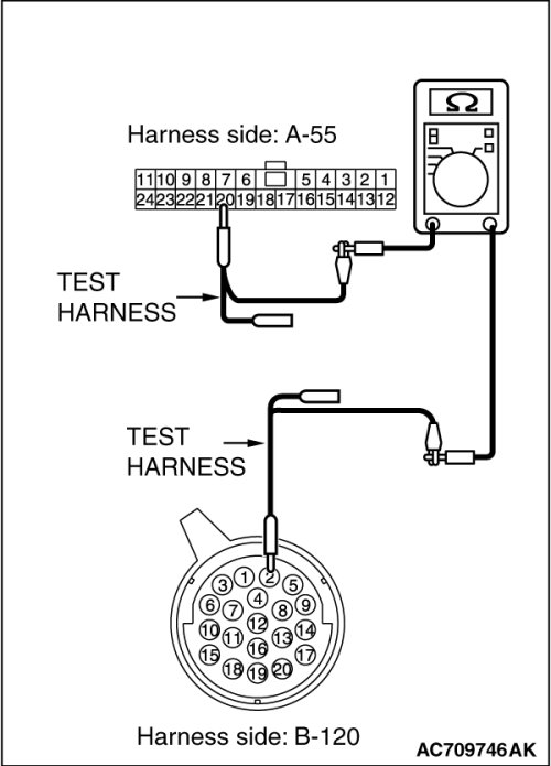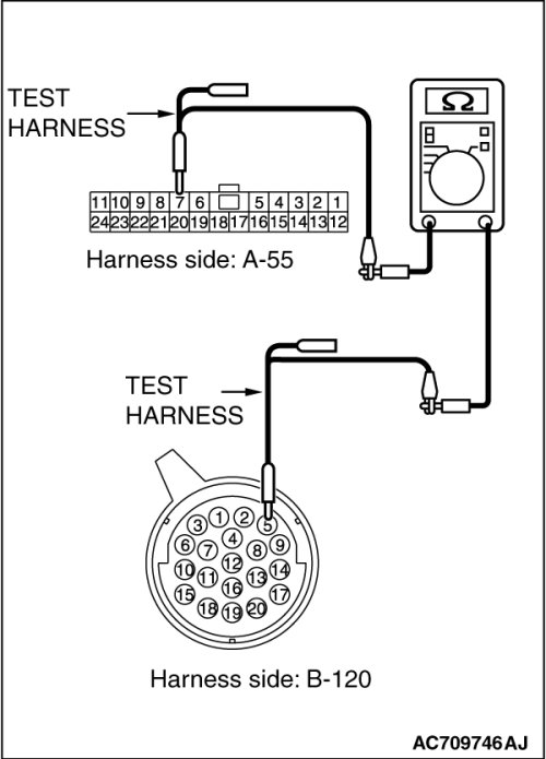 STEP 2. Check the wiring harness between joint connector (CAN4) A-55 and transaxle assembly (TC-SST-ECU) connector B-120 for open circuit.