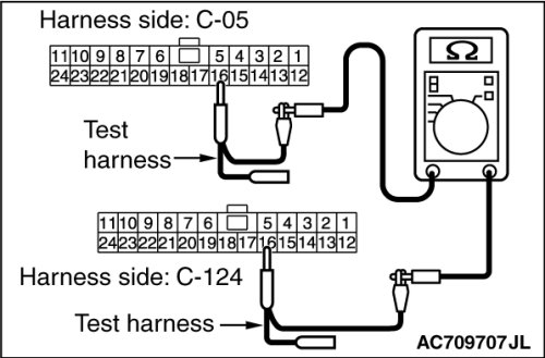 (3)Check the wiring harness between joint connector (CAN2) C-05 (terminal 16) and joint connector (CAN3) C-124 (terminal 16)