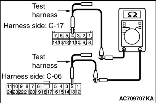 STEP 33. Check the wiring harness between joint connector (CAN1) C-06 and ETACS-ECU connector C-301 for line-to-line short. Measure the resistance at joint connector (CAN1) C-06.