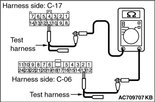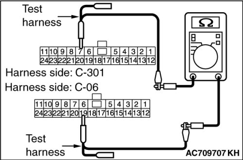 (3)Check the wiring harness between joint connector (CAN1) C-06 (terminal 19) and ETACS-ECU connector C-301 (terminal 7)