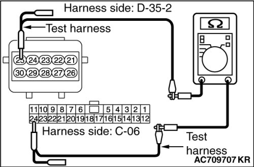 STEP 28. Check the wiring harness between joint connector (CAN1) C-06 and occupant classification-ECU connector D-35-2 for line-to-line short. Measure the resistance at joint connector (CAN1) C-06.