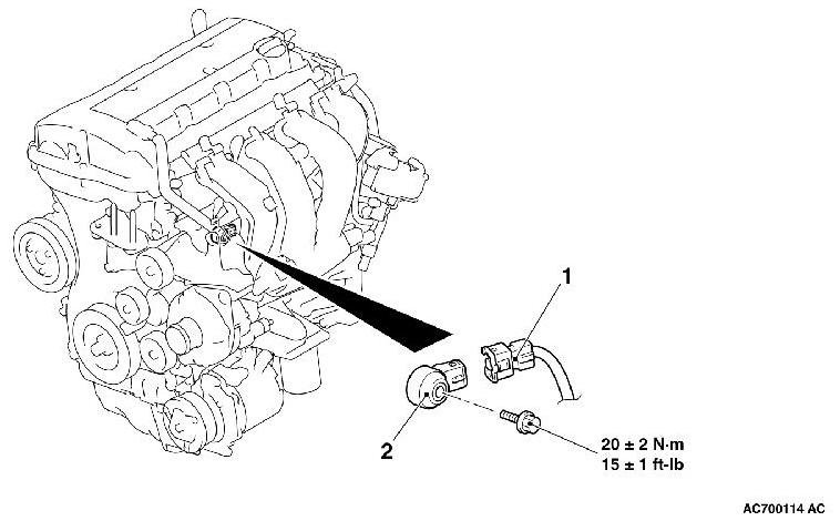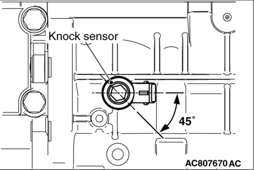 - When the knock sensor replacement is performed, use scan tool MB991958 to initialize the learning value Initialization Procedure for Learning Value in MFI Engine .)