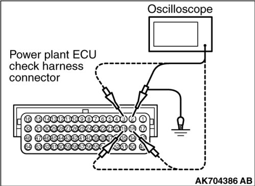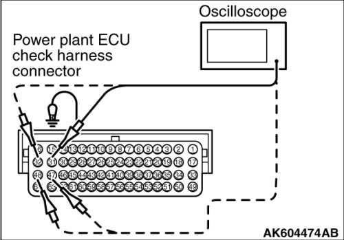 2. Connect the oscilloscope probe to check harness terminal No. 31, No. 32, No. 47 and No.