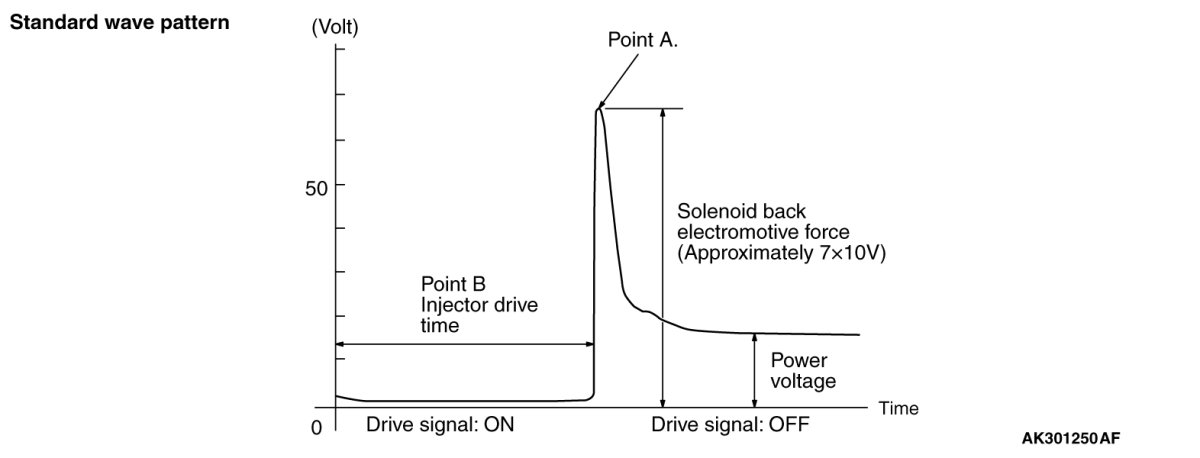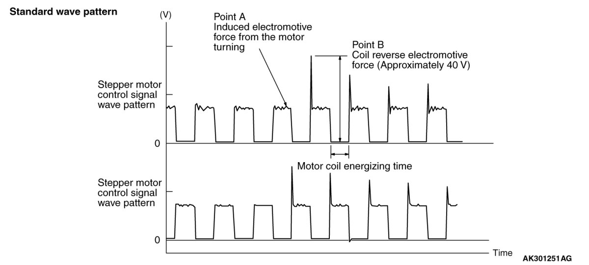 Point A: Presence or absence of induced electromotive force from the motor turning. (Refer to abnormal wave pattern.)