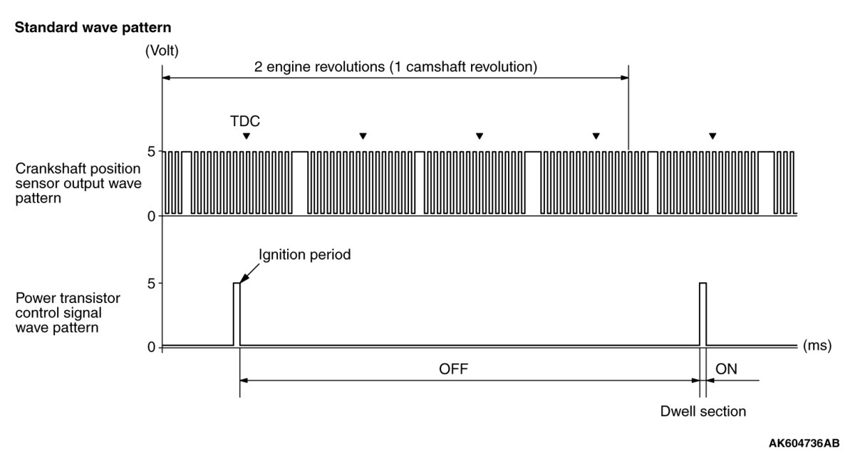 Point: The power transistor control signal (ignition timing) is advanced when the engine speed is increased.