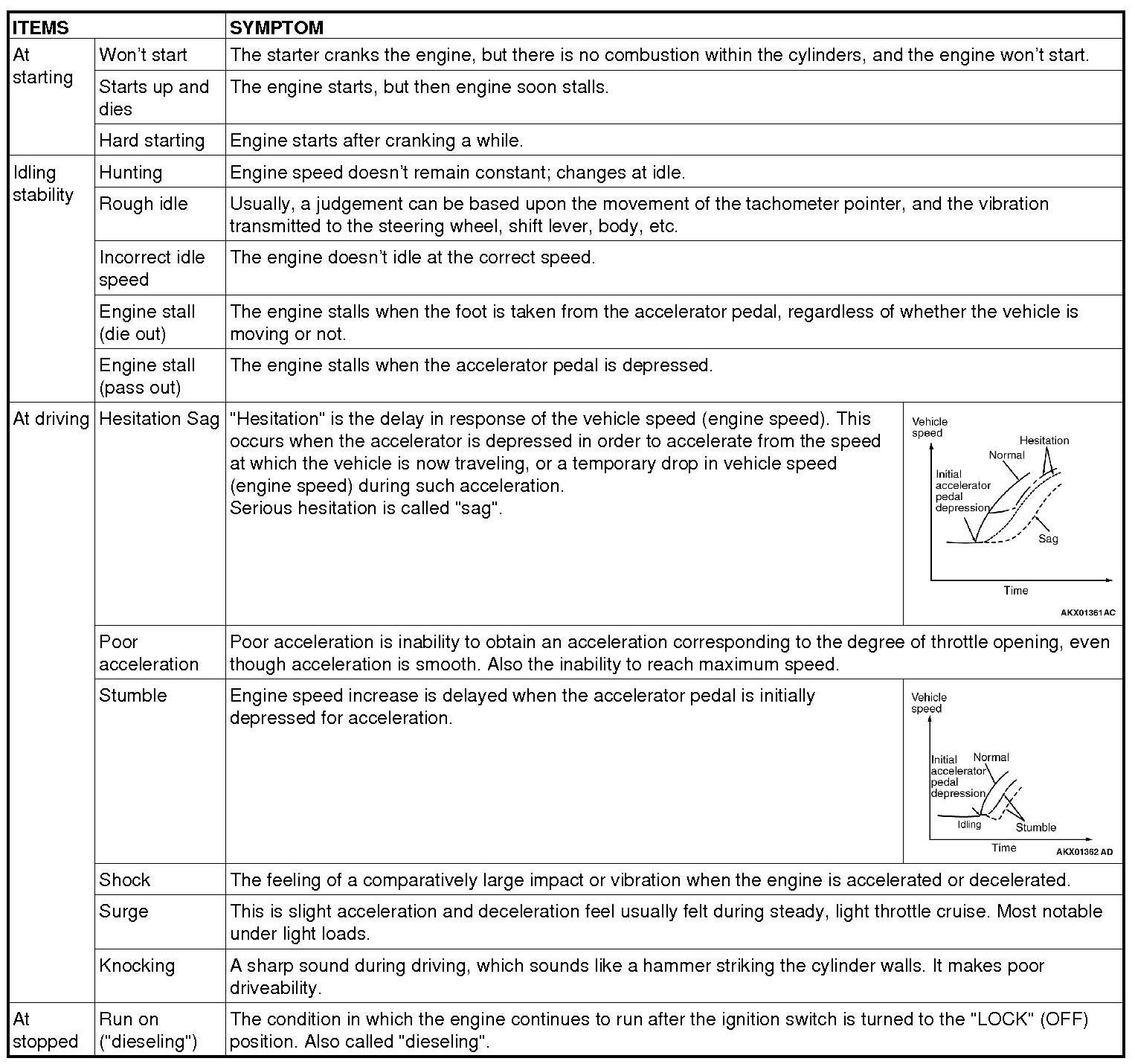 PROBLEM SYMPTOMS TABLE (FOR YOUR INFORMATION)