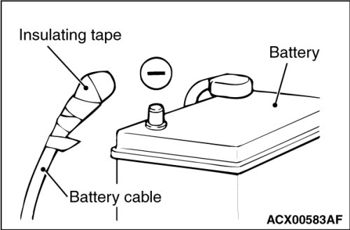 Disconnect the negative (-) battery cable from the battery and tape the terminal to prevent accidental connection and deployment.