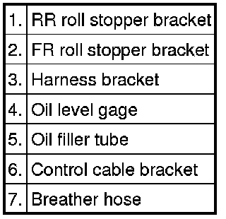 4. Remove the control cable bracket and breather hose from the transaxle.