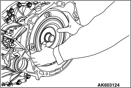 20. Using cylinder gage etc., measure the mounting bore diameter of differential side bearing outer race at the converter housing side; if the standard value is not satisfied, then replace the converter housing.