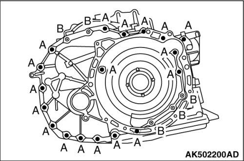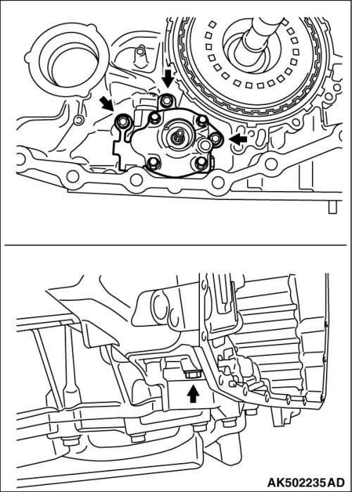 50. Remove the oil pump from the transaxle case. (One fastening bolt is installed at the backside from the transaxle case side.)