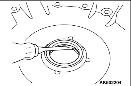 Using a flat blade screwdriver etc., remove the converter housing oil seal from the housing.