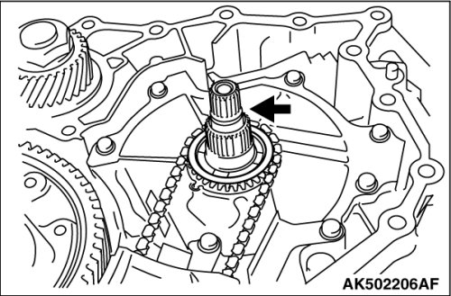 Be careful because adjusting shim of the drive sprocket may depart.