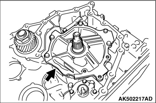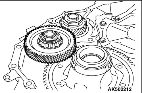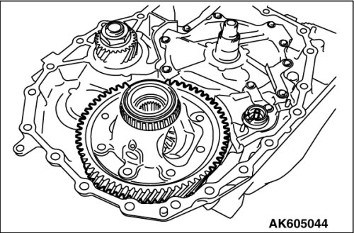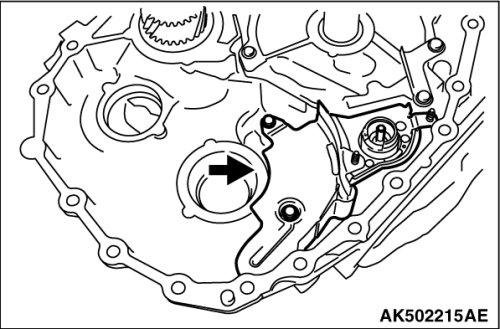 18. Using cylinder gage etc., measure the mounting bore diameter of reduction gear bearing outer race at the converter housing side; if the standard value is not satisfied, then replace the converter housing.