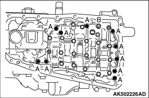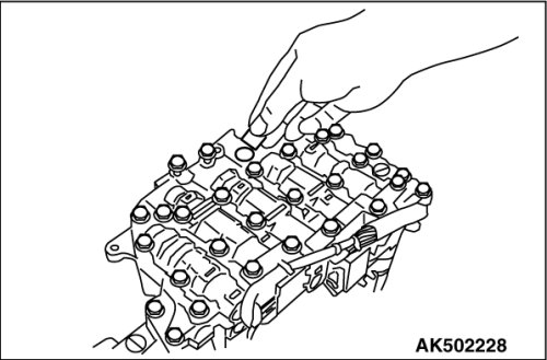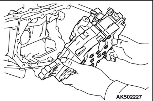 Tilt the control valve assembly, and after removing from the manual shaft side, remove the terminal body from the transaxle case.
