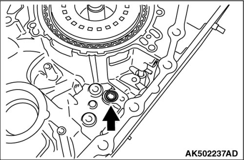 Feed the air in the oil hole shown in the diagram, and remove the reverse brake piston from the transaxle case.