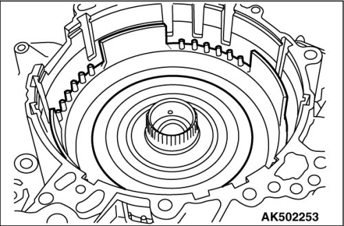 Check if there is damage, deformation, burn marks or permanent sets of the dish plate, driven plate, snap ring, and drive plate. Replace any defective part.
