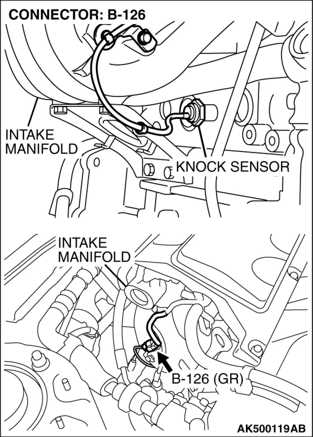 (1)Disconnect the knock sensor connector B-126.