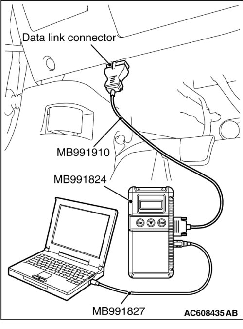 (1)Connect scan tool MB991958 to the data link connector.