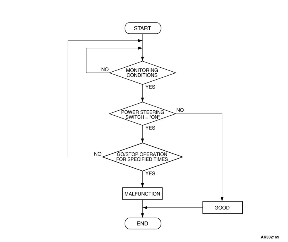 Power steering pressure switch stays on during specified go/stop operations.