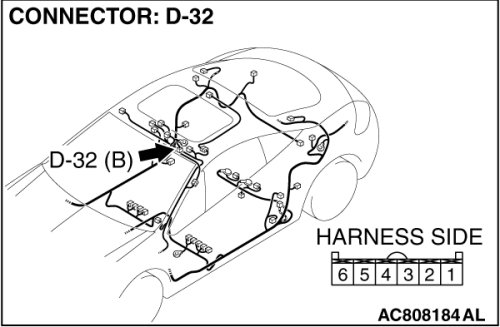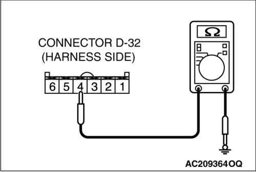 (1)Disconnect sunroof switch connector D-32 and measure the resistance available at the wiring harness side of the connector.