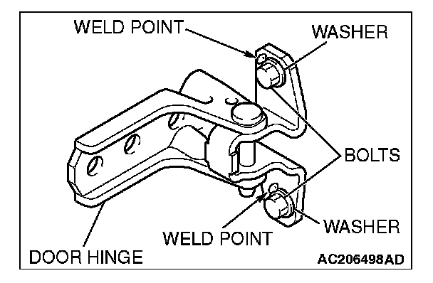NOTE: If the door hinge mounting bolt washers are welded, grind off the welding according to the procedure below beforehand.