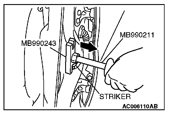 Use special tools MB990211 and MB990243 to pull the striker toward the outside of the vehicle.