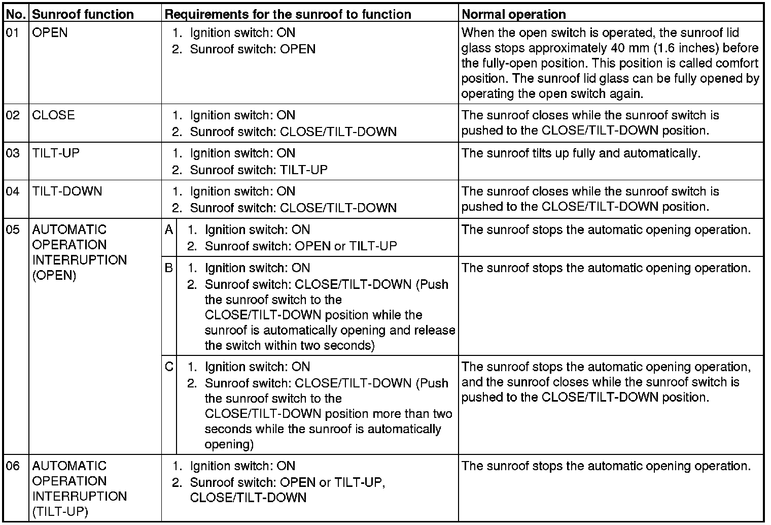 Sunroof Operation Check