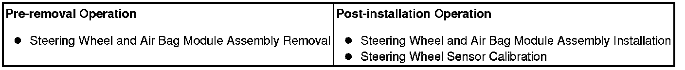 Before removing the steering wheel and air bag module assembly, refer to Service Precautions Service Precautions and Air Bag Module and Clock Spring Service and Repairor Service and Repair.