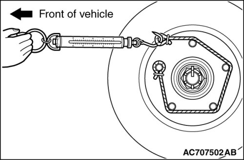 6. Using a spring scale, measure the hub sliding torque in the forward direction with the brake pad, shim and clip installed.